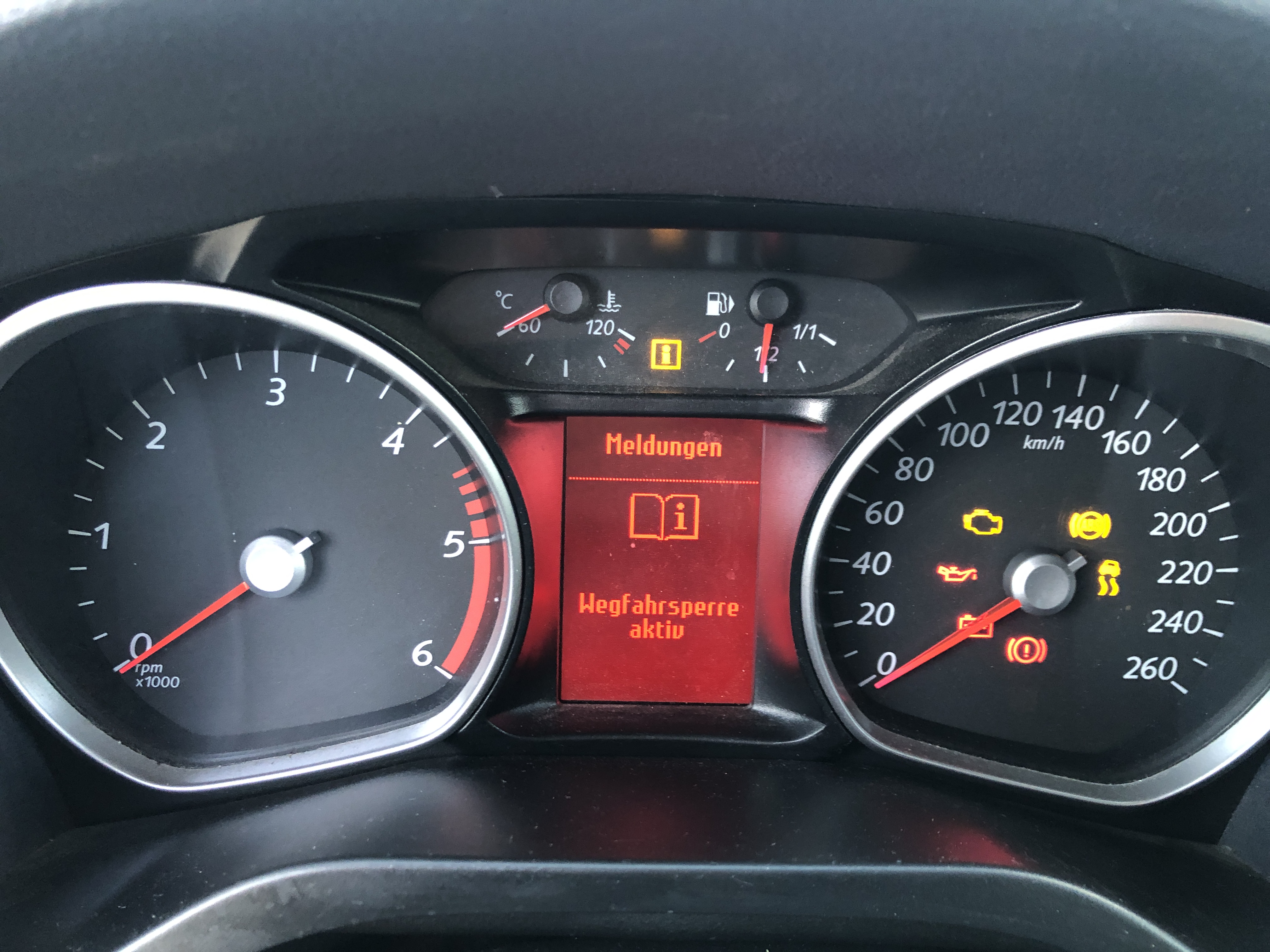 3. Beim Startversuch ertönte ein Signal und die Meldung **"Wegfahrsperre aktiv"** erschien. Der Motor startet seitdem nicht mehr.