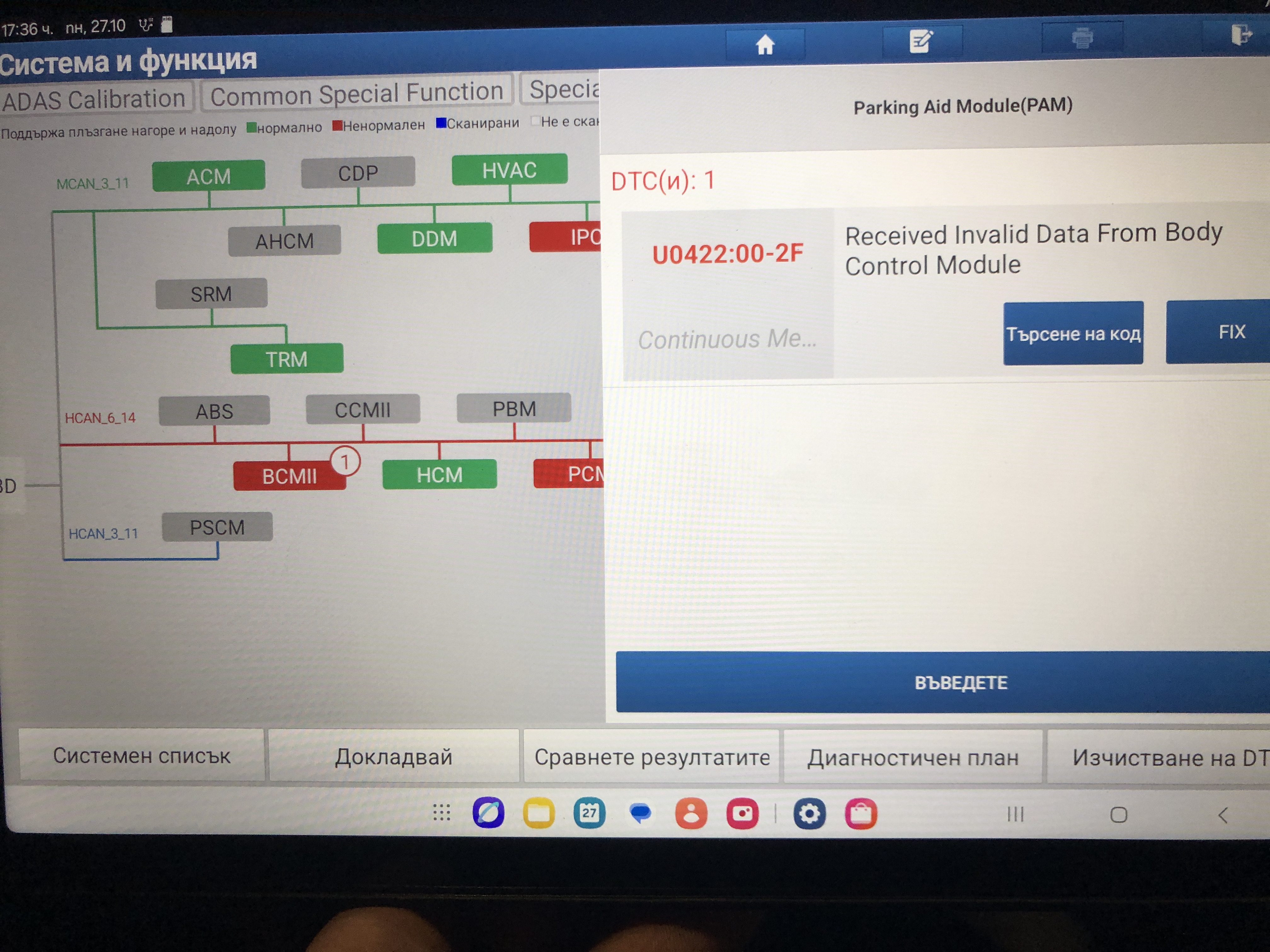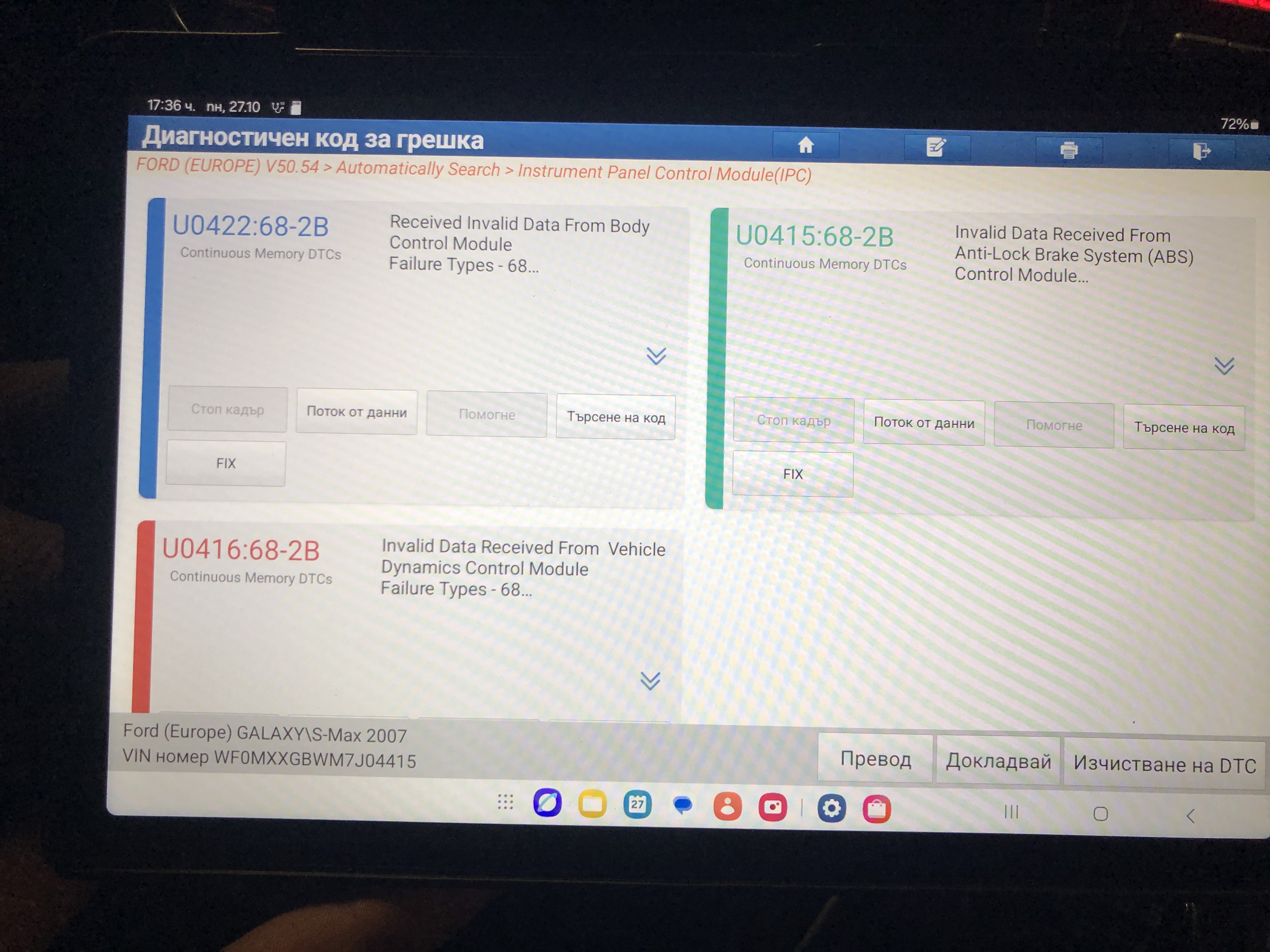 * Bosch-Service und freie Elektronik-Spezialisten lehnten die Reparatur ab und verwiesen mich an einen Ford-Spezialservice.**Diagnose-Ergebnis (Fehlercodes im IPC und PAM)